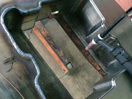 鋁、鈹銅模具由于模具材質(zhì)較模具鋼材軟,具備易磨損、易碰傷的特性。模具在經(jīng)過(guò)長(zhǎng)時(shí)間使用后,更容易出現(xiàn)壓塌、磨損等質(zhì)量問(wèn)題,各種牌號(hào)的鋁材和銅材,傳統(tǒng)氬弧焊修復(fù)這類模具材料,不易對(duì)熔池進(jìn)行穩(wěn)定控制,焊接部位容易出現(xiàn)虛焊、松散、氣孔、裂痕、強(qiáng)度差的問(wèn)題。大功率激光模具焊機(jī)可以解決這一難點(diǎn),由于銅、鋁材料對(duì)激光的吸收較低,所以需要更大的激光功率才能更好的融化焊絲,激光焊接修復(fù)后材料密度細(xì)密,不會(huì)出現(xiàn)沙孔等修復(fù)質(zhì)量問(wèn)題。