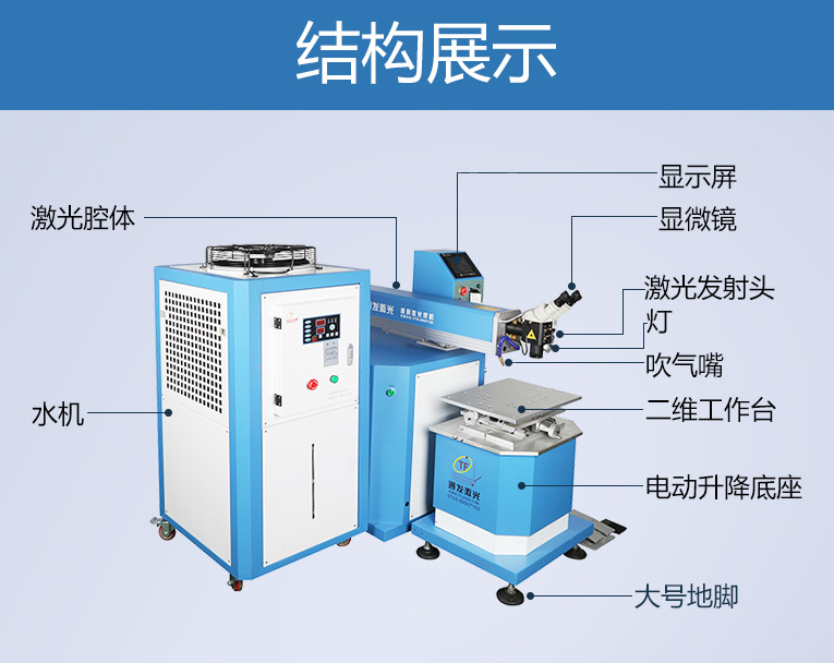 通發(fā)激光TFL-300Ⅲ大功率模具激光焊機(jī),比普通激光焊機(jī)修復(fù)模具效率快1.5-2倍,適合0.3-0.6激光焊絲,大功率更適合修復(fù)鈹銅模具、鋁模等較難修復(fù)的模具。